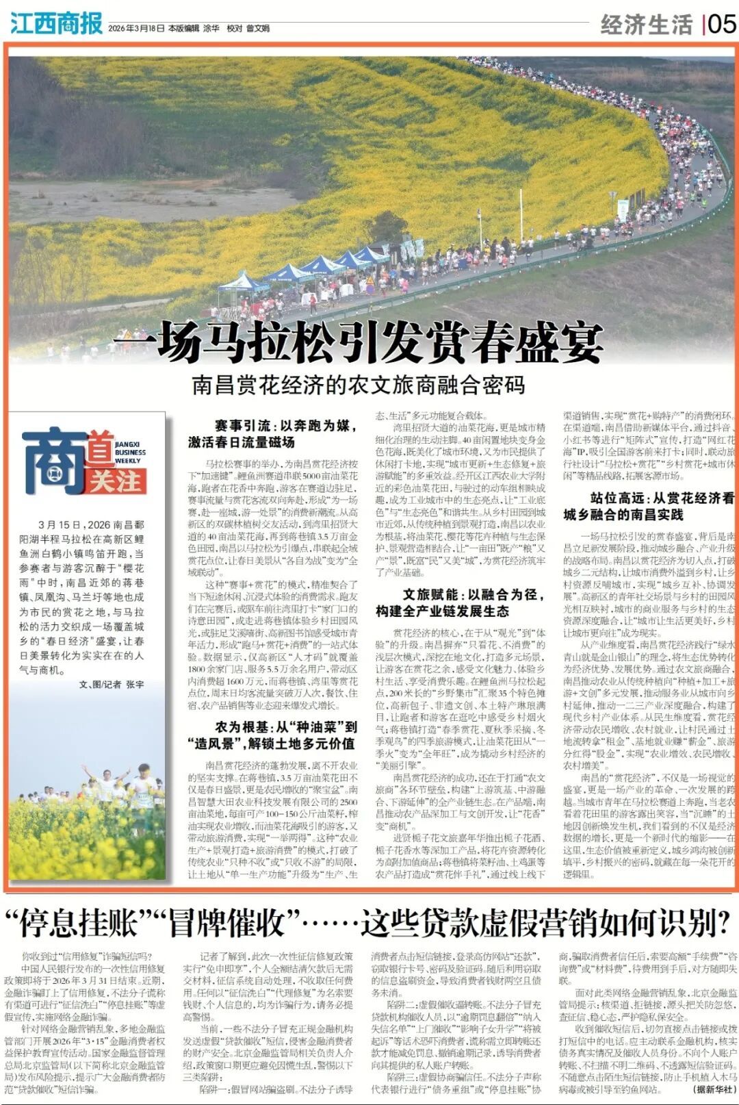 一场马拉松引发的赏春盛宴,背后是南昌立足新发展阶段,推动城乡融合、产业升级的战略布局。南昌以赏花经济为切入点,打破城乡二元结构,让城市消费外溢到乡村,让乡村资源反哺城市,实现“城乡互补、协调发展”。高新区的青年社交场景与乡村的田园风光相互映衬,城市的商业服务与乡村的生态资源深度融合,让“城市让生活更美好,乡村让城市更向往”成为现实。