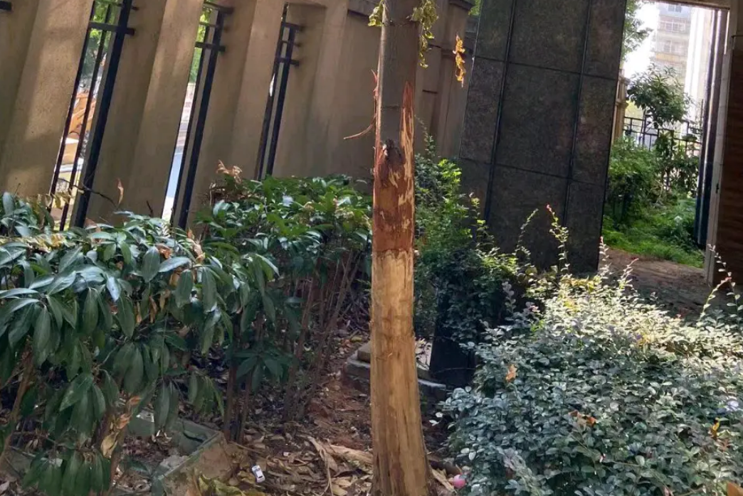 擅自将小区内两棵大树“剥皮”致死