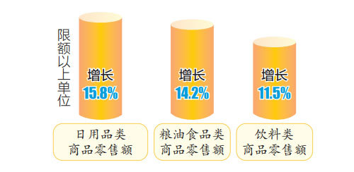 按消费类型分,限额以上单位商品零售额815.0亿元,增长4.6%;餐饮收入89.6亿元,增长8.3%。