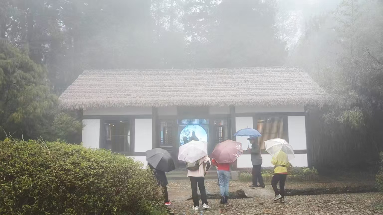 草堂前,游人如织。站在这里,恍惚间有种穿越感:千年前的那个江州司马,是否也曾在这片烟雨中驻足?看同样的湖,看同样的花。雨雾迷蒙间,时间仿佛失去了刻度——我们与白居易之间,不过隔着一场未停的雨。