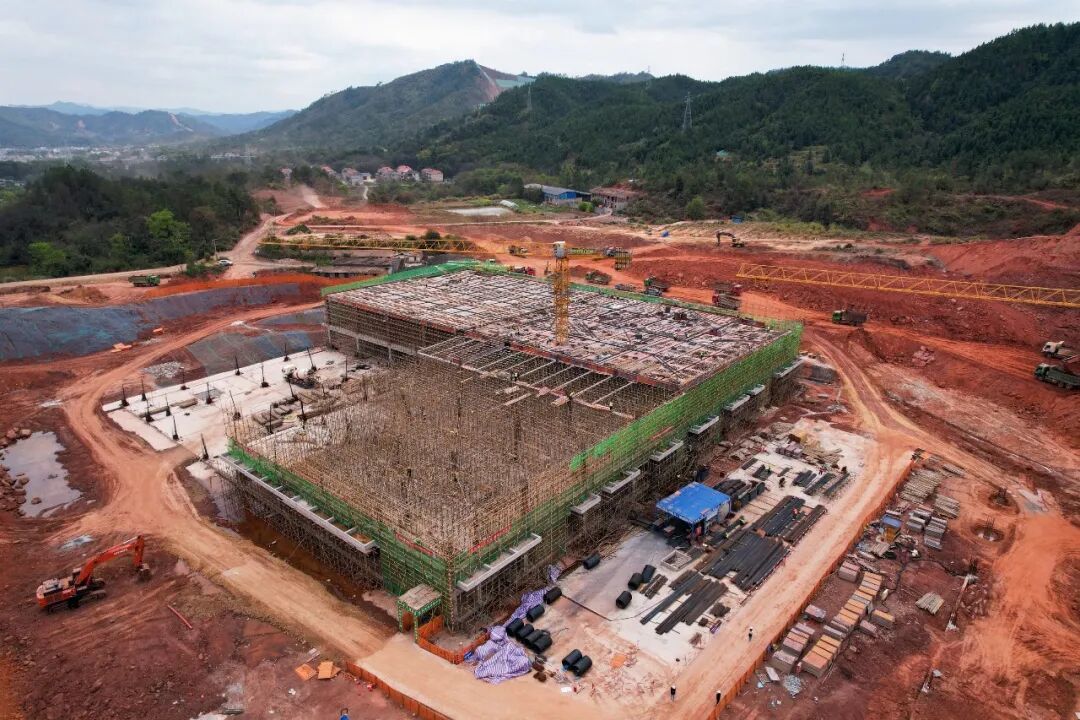 走进项目施工现场,塔吊长臂来回摆动,有序吊运建筑材料。200余名工人在不同区域,进行钢筋绑扎、模板安装等施工,挖土机、运输车等机械同步进行边坡作业。