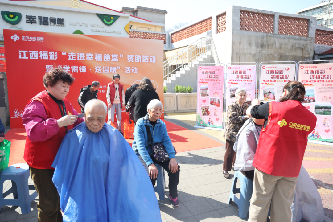 活动当天,江西福彩除了启动“走进幸福食堂”公益资助活动外,还组织福彩代销者、志愿者们开展暖心志愿服务,践行雷锋精神,为社区部分困难群众送上米、油等春日慰问品,贴心开展义剪、义诊、义拍等便民服务。