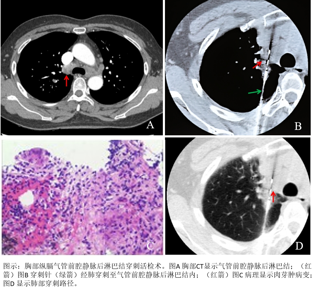 为破解诊断难题,经多学科会诊(MDT)讨论,医院决定依托放射科介入团队的技术优势,采用CT引导下经皮纵隔淋巴结穿刺活检术获取病理组织。为确保手术万无一失,放射科团队术前反复研究患者影像学资料,精准规划穿刺路径,避开血管、气管等关键结构,制定了详细的手术方案与应急预案。