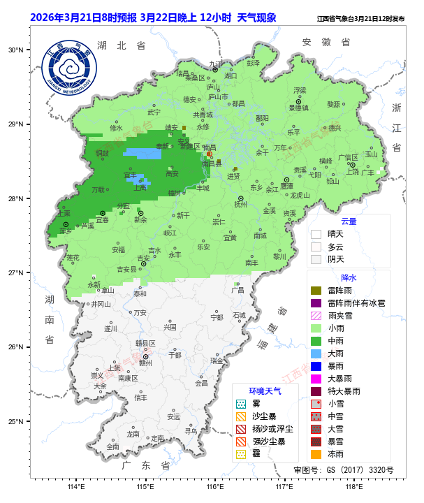 赣北、赣中局部地区有大到暴雨