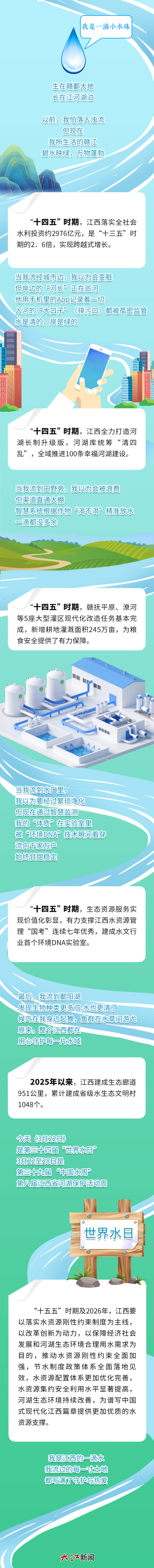 3月22日是第三十四届“世界水日”,3月22至28日是第三十九届“中国水周”、第八届江西省河湖保护活动周。在这守护碧水、珍惜水资源的特殊时节,让我们跟随赣江一滴水珠的视角,看见赣鄱大地的“碧水新颜”。