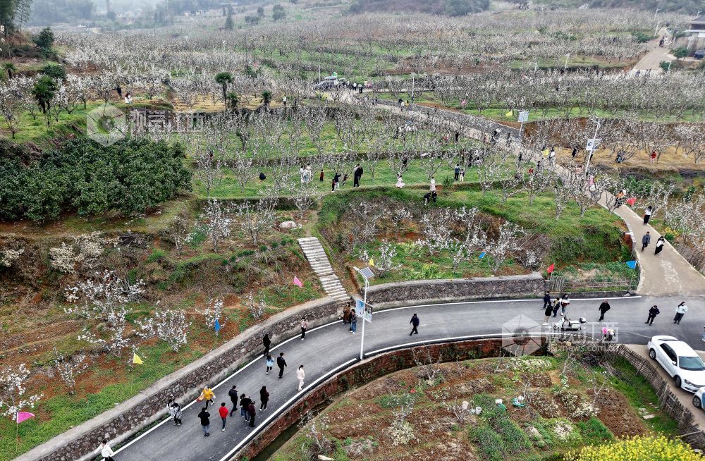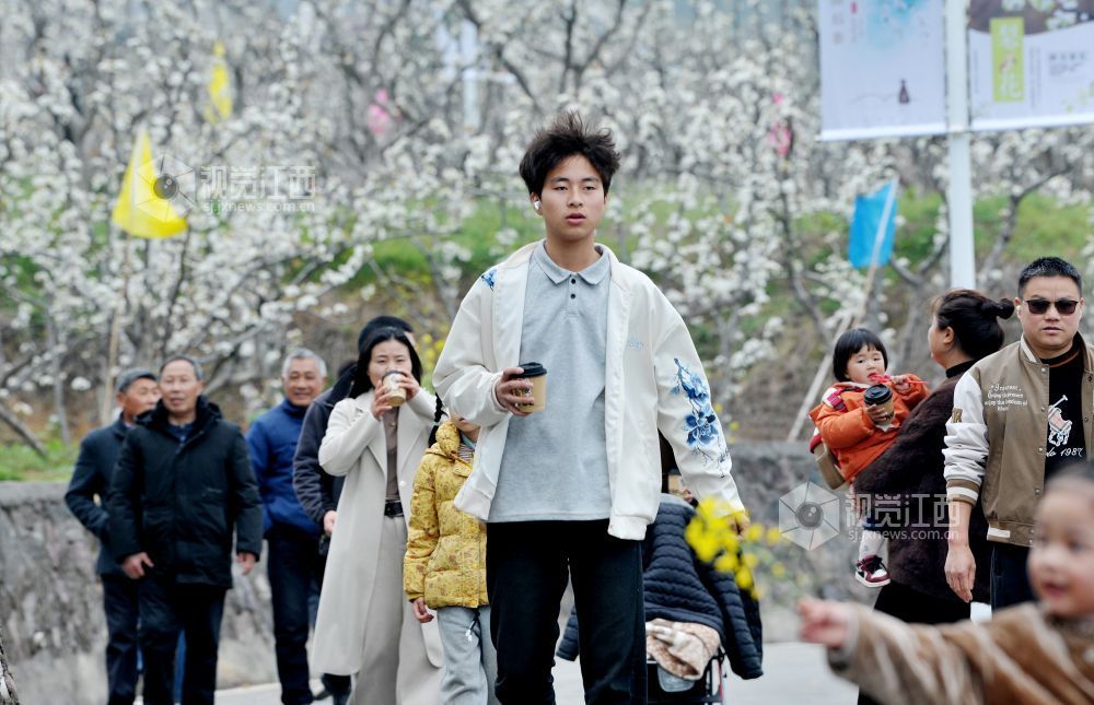 2026年3月21日,游客正在江西省上饶市广丰区吴村镇塘边村千亩梨花基地赏花观景。