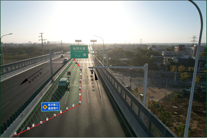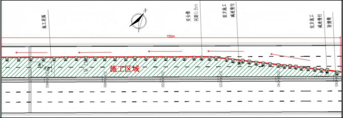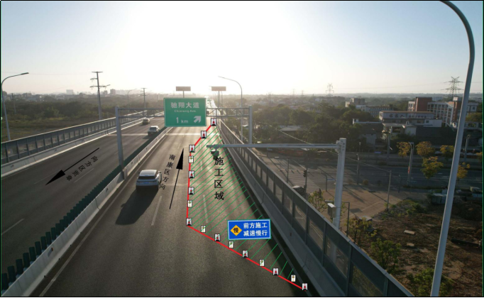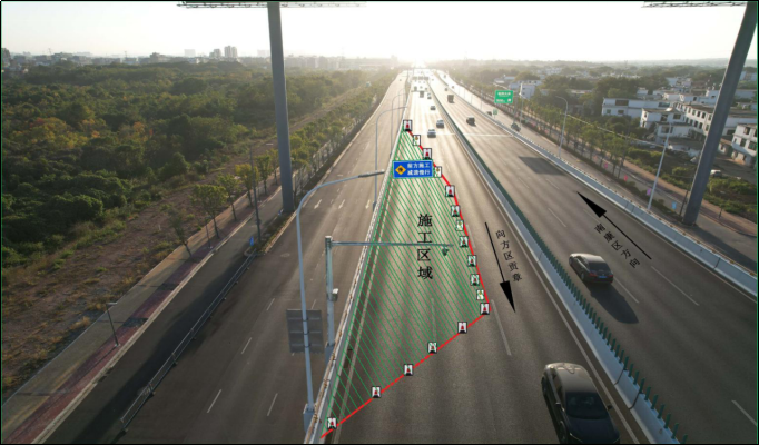 因南侧需维护范围较小,且在最外侧车道上,施工时占用最外侧1.5车道,剩余1.5车道保障车辆通行,高峰期保证2车道通行。