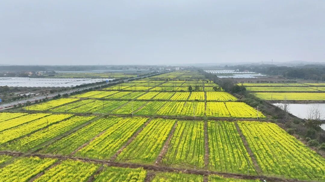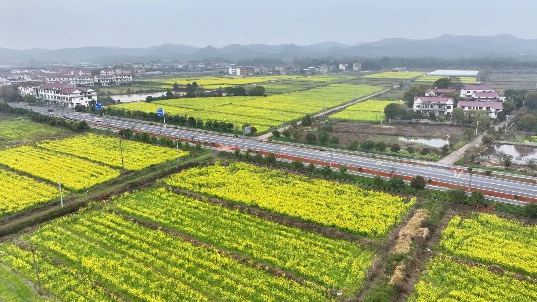 薄雾轻笼,细雨如丝。走进贵塘公路雷溪路段,千亩油菜花在绵绵春雨中迎风摇曳,金黄色的花海与朦胧烟雨相融相映,勾勒出一幅温婉灵动的江南画卷。