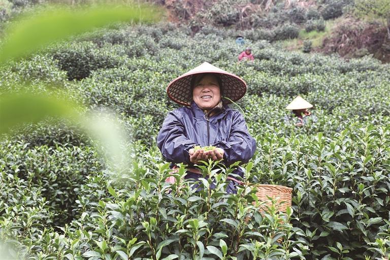 仲春时节,嫩芽吐翠,茶香四溢。连日来,横峰县青板乡1800余亩茶树基地迎来明前茶采摘黄金期,漫山茶树郁郁葱葱,采茶工挎篓穿梭、指尖翻飞,勾勒出一幅人勤春早的田园画卷。