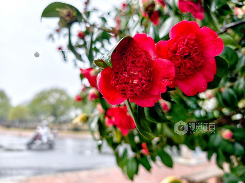 2026年3月23日,江西省分宜县东湖公园,淅沥春雨骤然停歇,公园内的山茶花正值盛开期,艳红、柔粉等各色花团密密匝匝缀满枝头,成为春日里最亮眼的景致。 视觉江西 袁建兵 摄