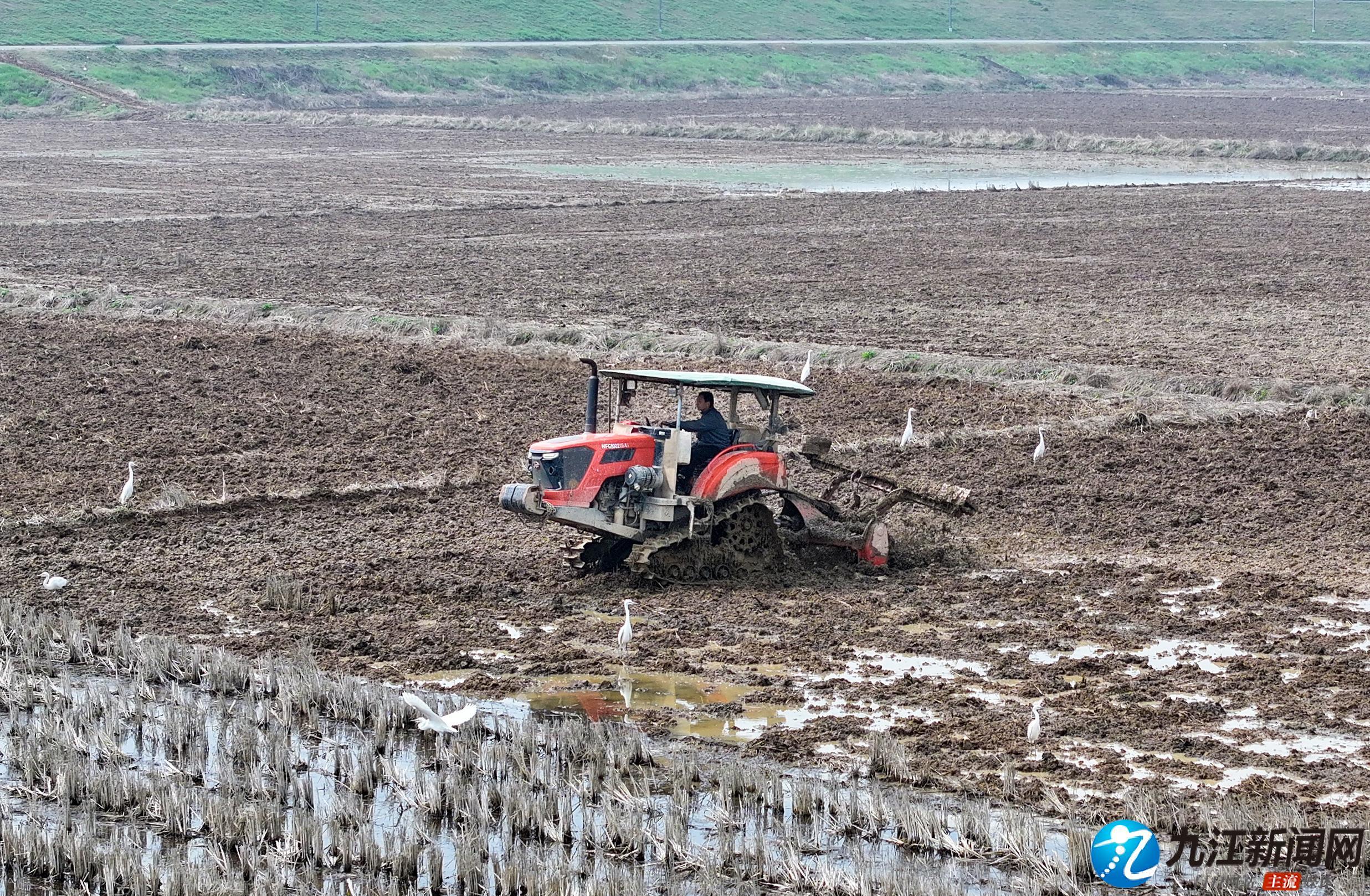 近日,在共青城市苏家垱乡浆潭联圩内的连片农田里,几台翻耕机在田间来回驰骋,将一片片稻田翻松、整平,机器轰鸣声回荡在田间地头,奏响了春耕备耕的奋进曲。共青城市依托机械化作业,大幅提升翻耕效率和耕地质量,推动春耕生产更高效、更智能,确保不误农时、不误农事,全力守护粮食生产安全底线。(潘成 九江日报全媒记者 刘家 摄)