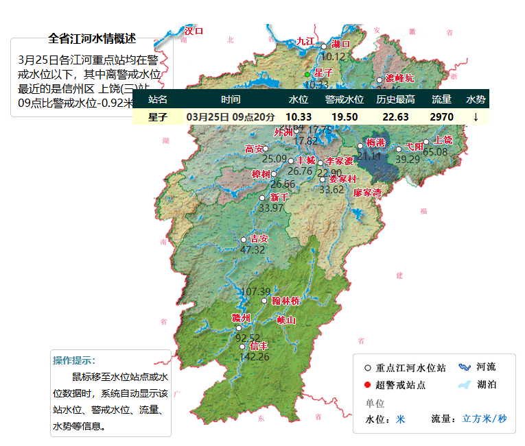 作为“长江之肾”,鄱阳湖承接江西“五河”赣江、抚河、信江、饶河、修河来水,经过调蓄后从九江湖口县汇入长江。每年4月至6月,“五河”汛期早,鄱阳湖水位开始上升;7月至8月,随着长江进入主汛期,干流水位高,顶托鄱阳湖维持高水位。因此,一般情况下,鄱阳湖在4月至9月为丰水期。