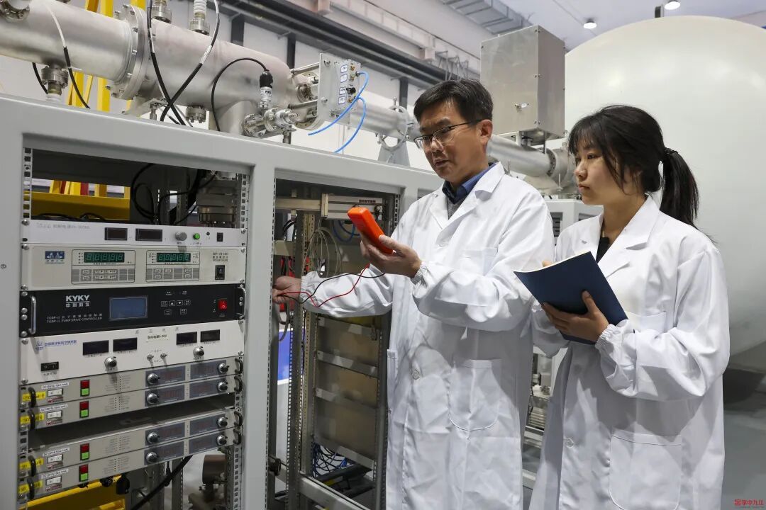 3月24日,中国原子能科学研究院瑞昌核物理应用研究院科研人员正对设备进行检测调试。我国首台商用2×6MV串列加速器目前在瑞昌市已完成组装与冷调试,达到设计指标,零部件实现全部国产,拥有完全自主知识产权。
