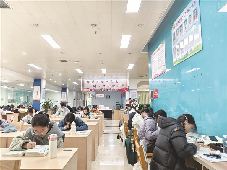 3月21日,上饶市图书馆各个学习区域座无虚席,不同年龄段的读者们正专注学习,为梦想加油。为了更好服务市民多样化学习需求,市图书馆积极增设座位、拓展阅览空间,并对空调、照明、直饮水等设施细致优化,努力营造舒适有序的学习环境。