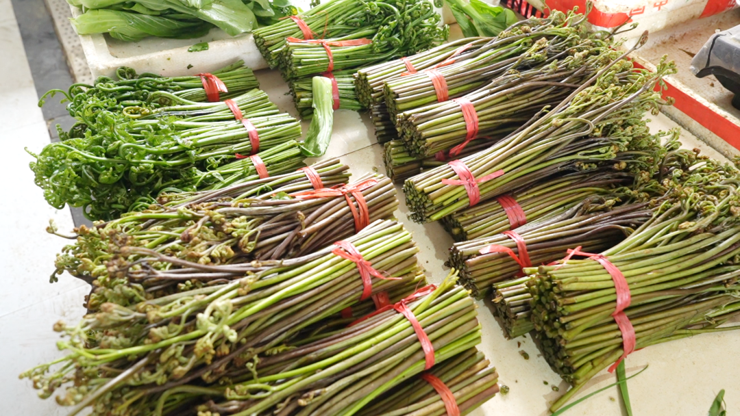春回大地,万物复苏。随着气温稳步回升,德兴的农贸市场也跟着热闹起来——山蕨、水蕨、春笋、白菜心、马兰头……各种春菜陆续登场,绿油油、鲜嫩嫩的,带着泥土的清香,走上百姓餐桌,为春日添上一抹鲜甜滋味。