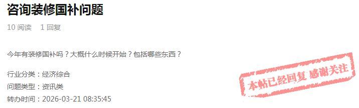 “今年有装修国补吗?大概什么时候开始?包括哪些东西?