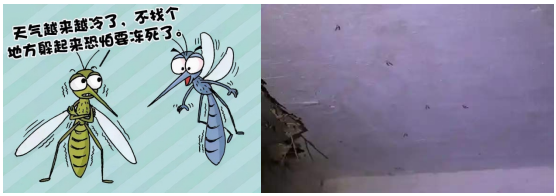 在冬季,大部分蚊子会进入“越冬”状态,藏在地下车库、仓库、楼道、管道井等温暖湿润避风的场所,等待气温变暖,蚊子大军就会开始寻觅“有缘人”进行叮咬吸血,为产卵繁育下一代打好营养基础。