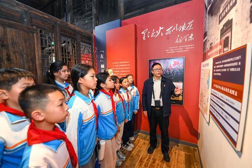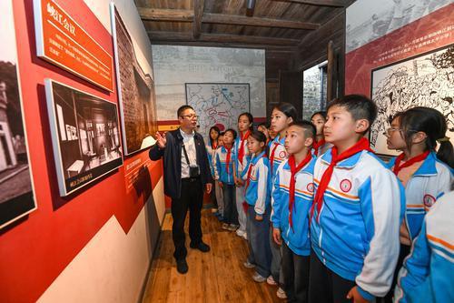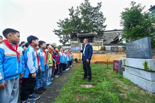 3月30日,樟树市昌傅镇中心小学的老师在太平村太平圩会议旧址向学生讲述烽火岁月里的革命故事。清明节前夕,樟树市昌傅镇中心小学组织学生开展“缅怀革命先烈厚植家国情怀”红色探访主题活动,让孩子们在实地探访中接受精神洗礼,感悟革命先辈的爱国情怀。特约通讯员周亮摄