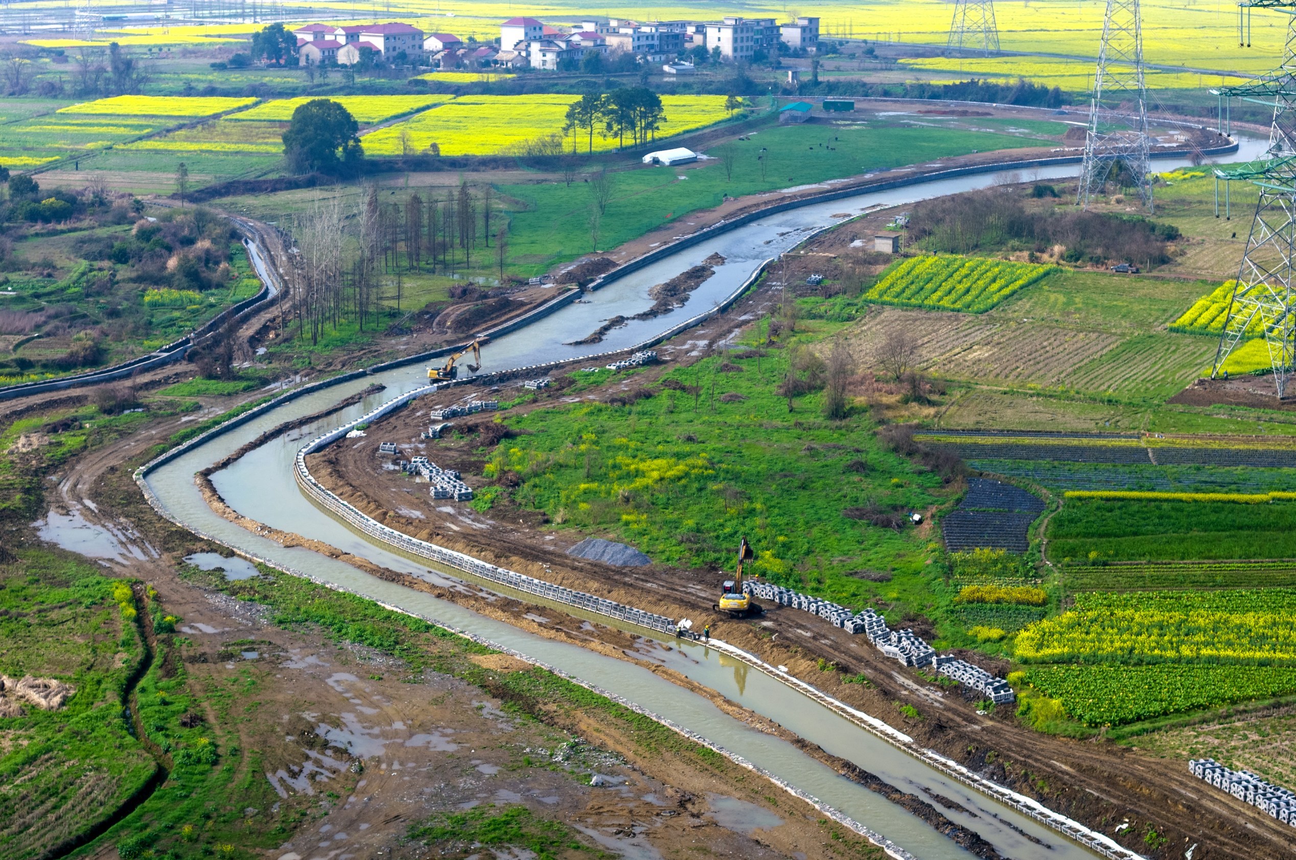 近日,施工人员在孔目江观巢段加固边坡、清理河道淤泥。春耕在即,我市加速推进农田水利设施建设与管护,保障春耕春灌用水和防汛安全。本报记者 凌厚祥摄