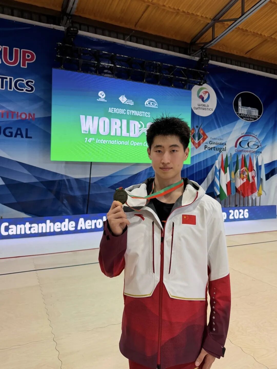 在此次第11届国际体操联合会(FIG)健美操世界杯首站赛事中,张景山随中国健美操队出征,凭借过硬的竞技实力与稳定发挥,一举夺得五人操项目金牌。这是他继2024年世锦赛夺冠后,再次站上世界最高领奖台。