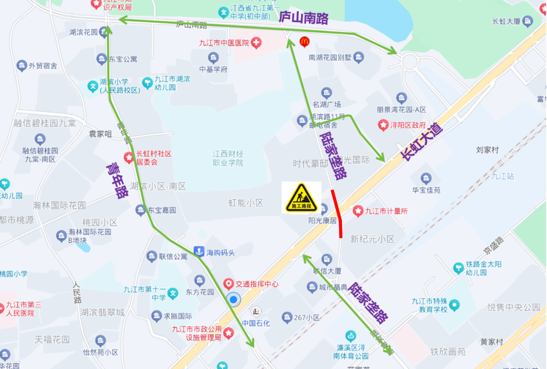 因长虹大道福泰118 酒店及光大银行处路面塌陷抢修工程的需要,经九江市人民政府相关部门批准,九江三峡二期水环境治理有限责任公司将对陆家垄路部分路段挡土墙实施改造施工。为保障施工期间道路交通安全、有序、畅通,根据《中华人民共和国道路交通安全法》第三十二条、第三十九条,《中华人民共和国道路交通安全法实施条例》第三十五条之规定,决定对陆家垄路部分路段实施交通管制。现将具体事项通告如下: