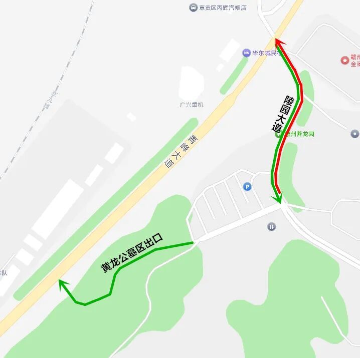 1、陵园大道只能由青峰大道往黄龙公墓区单向通行,公墓区内的车辆请从公墓区停车场专用出口驶出。