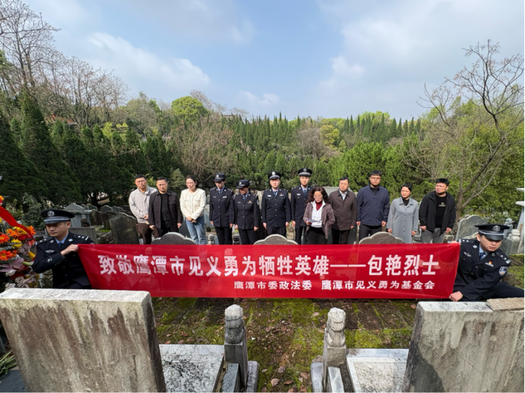 松柏凝翠寄哀思,清风拂面敬英魂。又是一年清明至,为深切缅怀见义勇为牺牲烈士,传承弘扬英雄精神,营造崇尚英雄、学习英雄、关爱英雄的浓厚氛围,2026年4月1日,见义勇为牺牲烈士祭扫活动在鹰潭市殡仪馆烈士包艳墓地前举行,鹰潭市委政法委、鹰潭市见义勇为基金会有关负责同志以及贵溪市、月湖区政法干警代表参加活动。