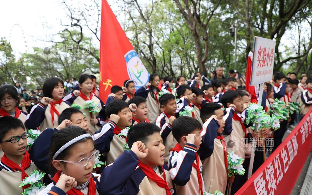当日,余干县第五小学、实验小学、乌泥镇中心小学等学校以“行走的思政课”方式,组织学生来到东山岭烈士纪念碑,通过献花、默哀、擦拭烈士墓碑等方式,缅怀革命先烈,传承红色基因,表达对革命先烈的敬意。
