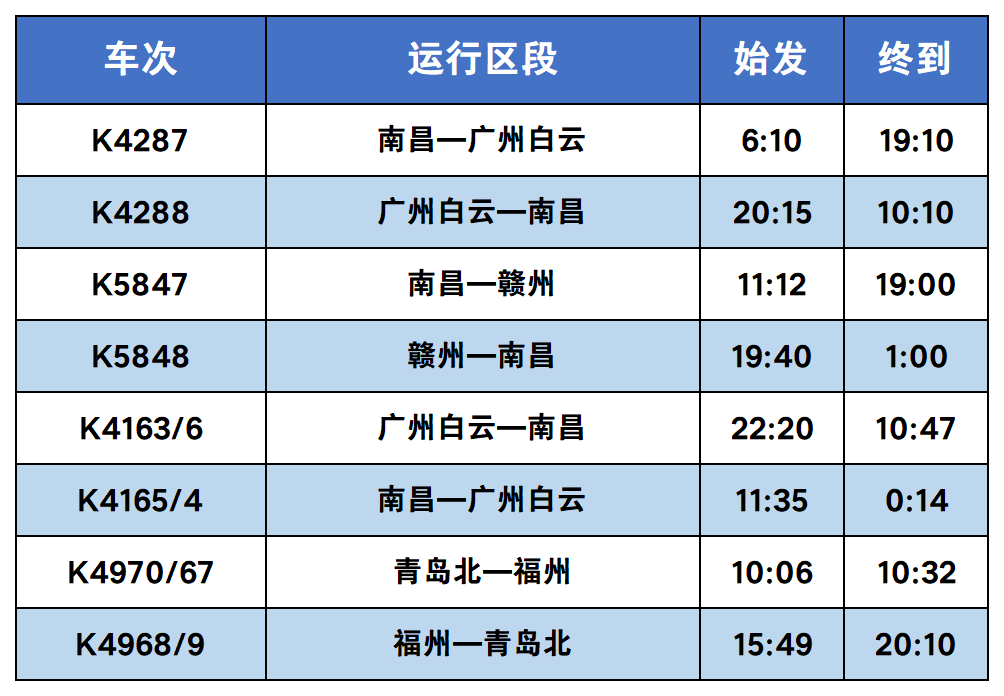未注明始发终到时刻的车次,根据客流变化适时加开