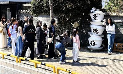 漫步三宝村,奇形怪状的陶瓷作品遍布各处:憨态可掬的动物雕塑、创意叠放的瓷具、青花瓷片装饰的墙垣,每一处都成为拍照热点。游客们或穿梭于花海与瓷艺之间,或在李树花下与创意瓷瓶合影,或驻足欣赏艺术家现场制瓷,春光与瓷韵交织,美不胜收……