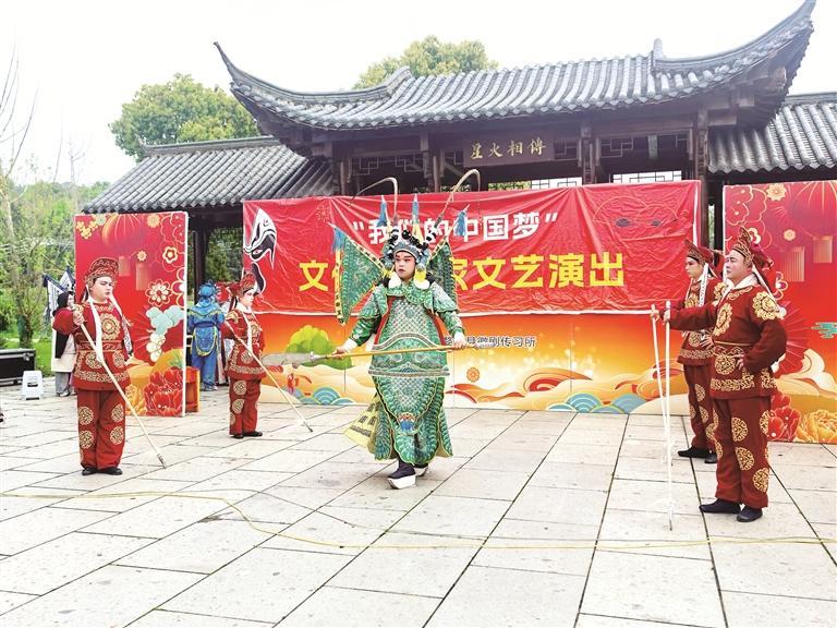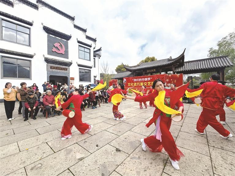 日前,婺源县新时代文明实践中心组织演出队深入乡村,开展形式多样的演出活动,丰富广大群众精神文化生活。图为4月1日,演出队在婺源县曹门村演出。单长华 摄
