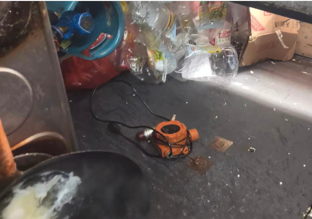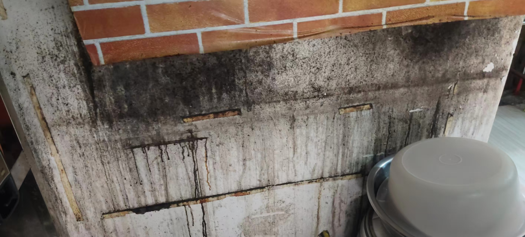 后厨整体环境较差,垃圾未及时清理,墙体有大量油垢。