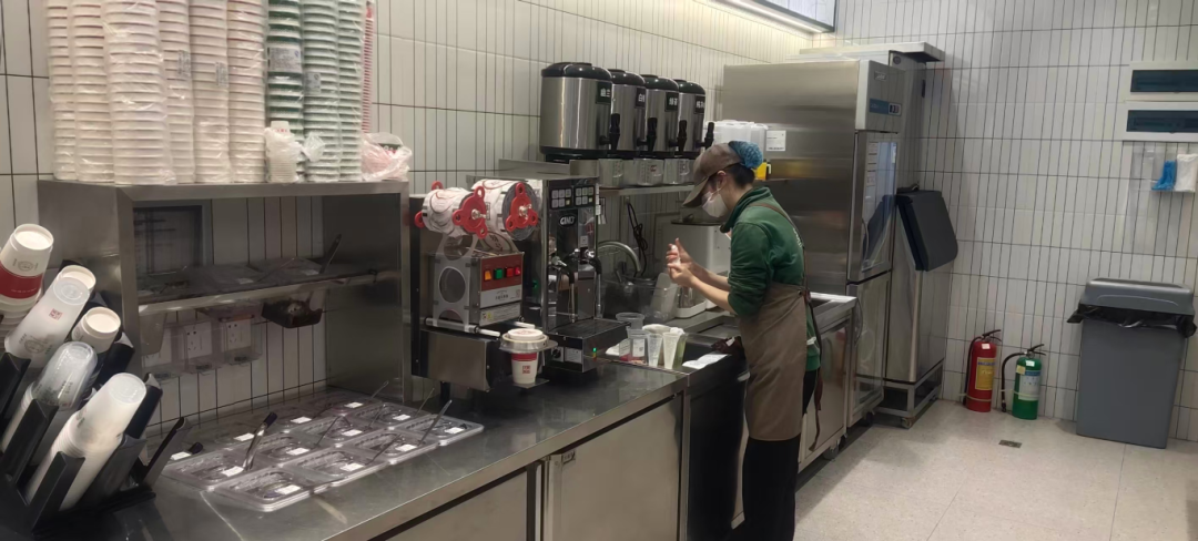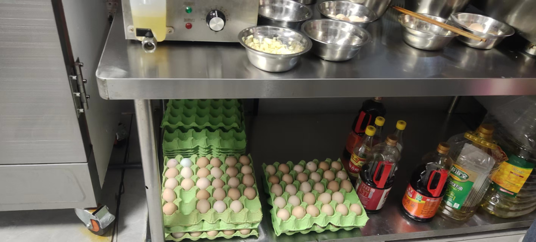 墙面完好无污渍,物品摆放有序,加工操作规范。
