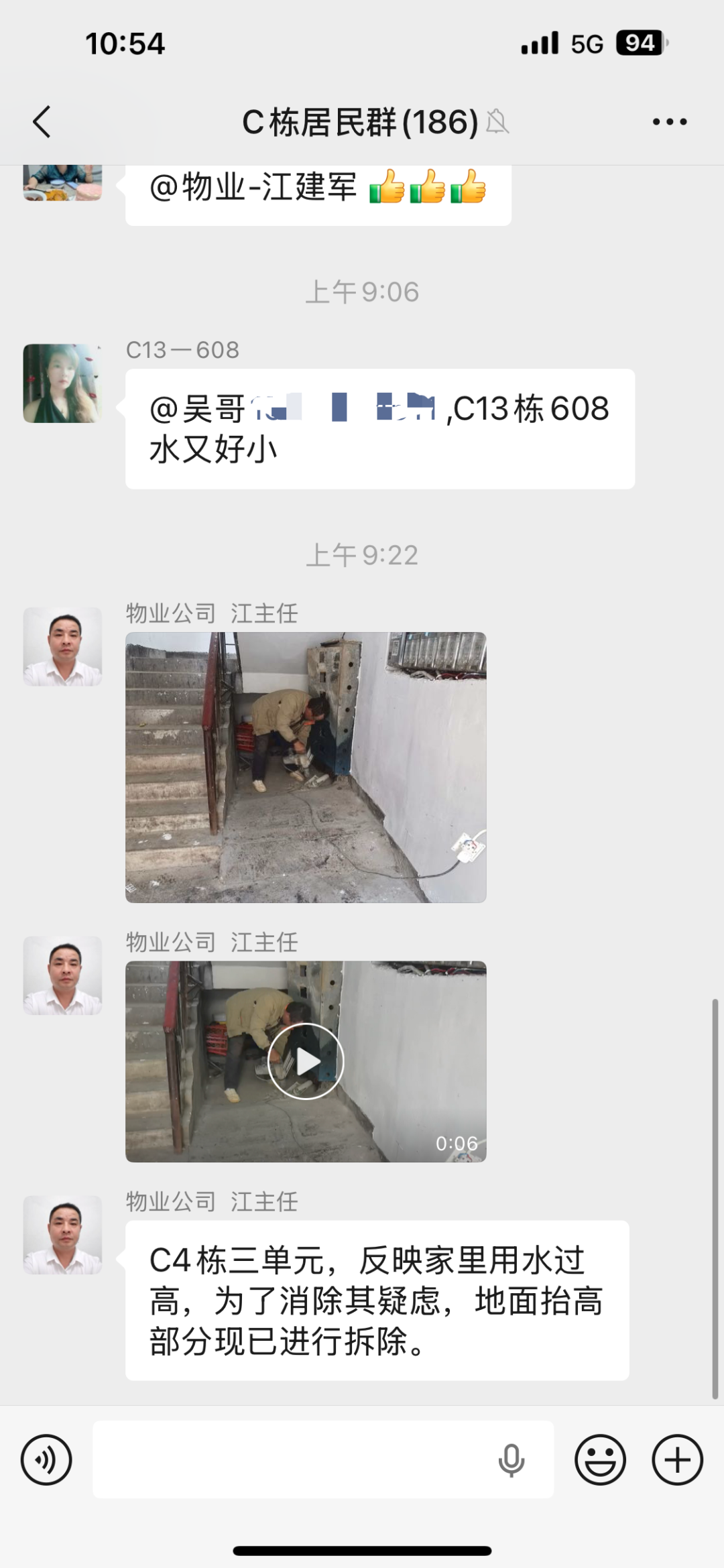 经开区第一时间安排南河社区联合湖田经济适用房小区物业工作人员赶赴现场,对漏水及噪音来源开展细致排查。