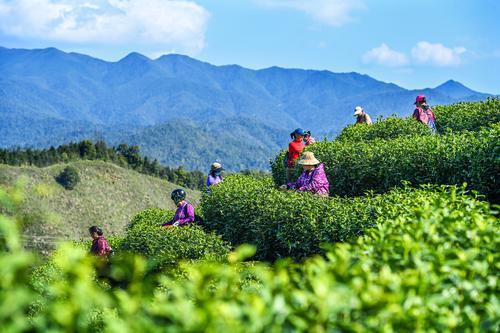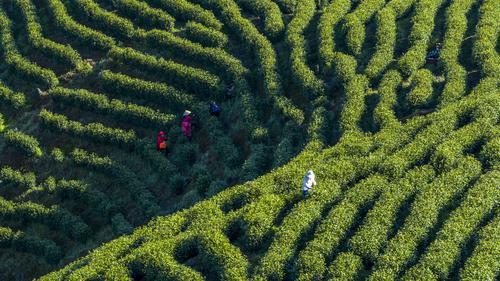 4月1日,铜鼓县大塅镇鹤吼村杨家坳茶园,茶农正忙着采摘春茶。近年来,铜鼓县茶叶种植面积、茶叶年产量稳步提升,助力村集体经济和农户增收。特约通讯员 周亮 摄