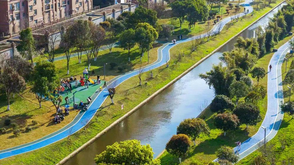 近日,位于樟树市福城街道的草溪河两岸春意盎然,市民或在健身步道悠闲漫步,或在口袋公园嬉戏玩耍,一派祥和、幸福景象。