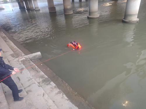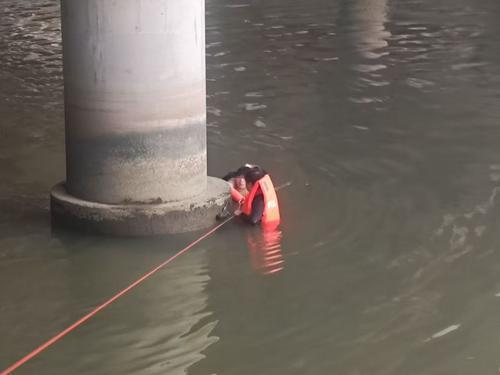 水流比谢文强预想的要猛得多。他拼命往桥墩方向游,眼看就要靠近,突然一股暗流涌过来,整个人被漩涡吸住。岸上的辅警易雨、罗连兵死死拽住连接谢文强的安全绳,合力把他拉回岸边。谢文强喘着粗气爬上岸,顾不上缓一缓,马上和赶来支援的辖区派出所民警一起检查装备。