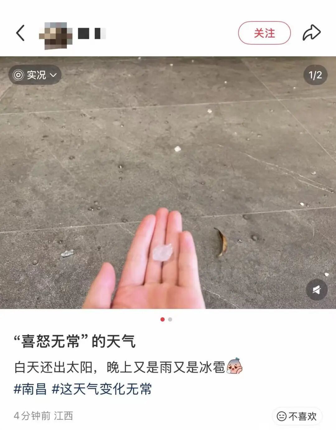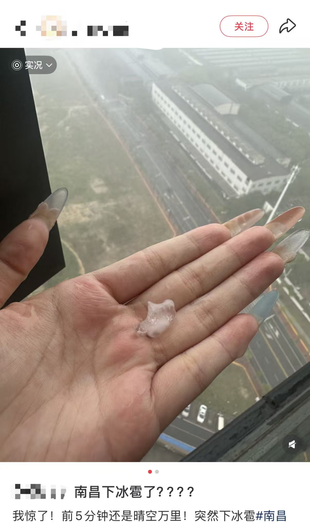 鸽发布天气提醒不久,就有网友在评论区留言:冰雹已到位。