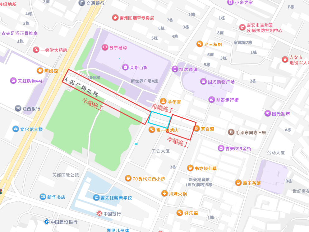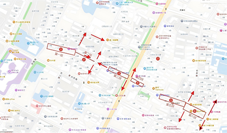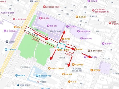 (十四)广场北路绕行路线,半幅封闭路段:从另半幅通行
