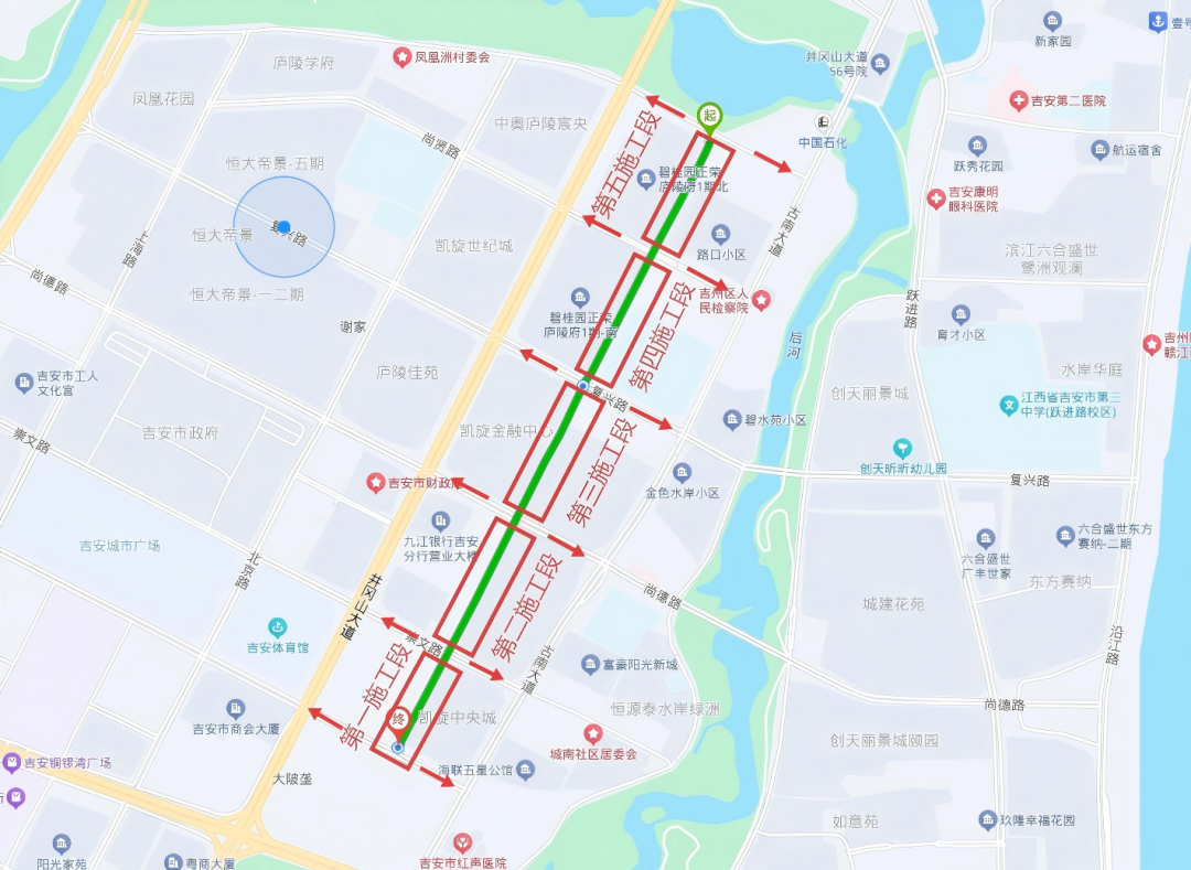 (六)锦江路绕行路线一:石阳路→吉州大道
