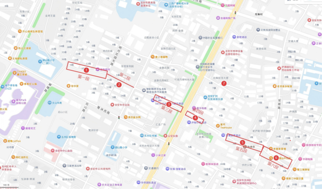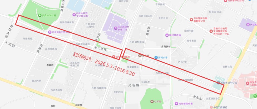 (八)中山西路绕行路线一:光明路→吉州大道