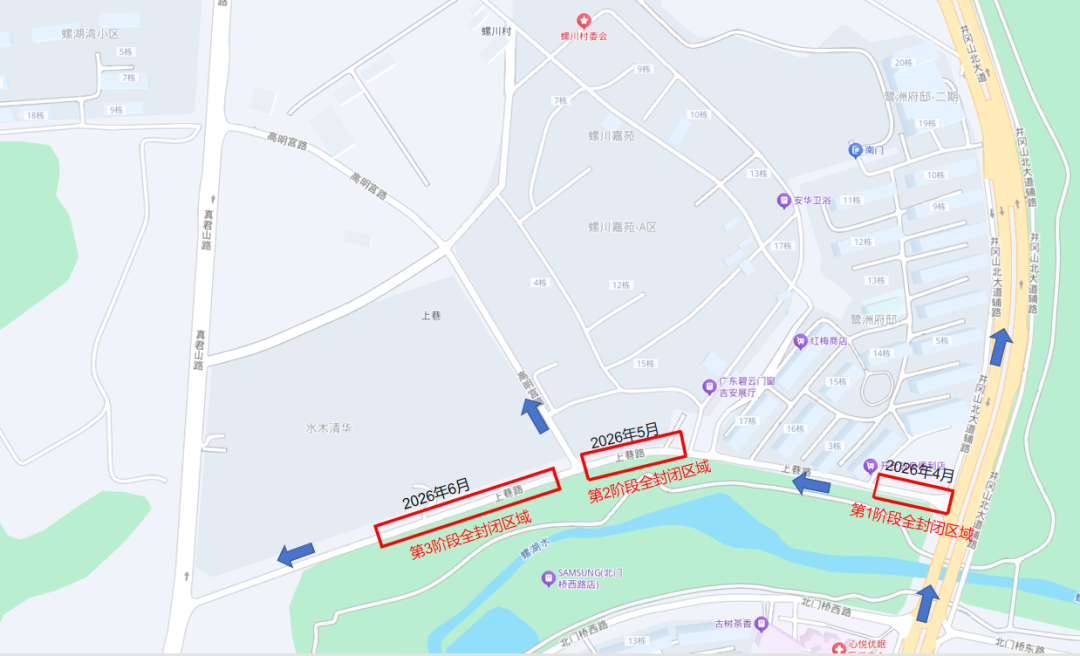 (十五)上巷路(真君山路——井冈山北大道)分三个阶段实施全幅封闭施工