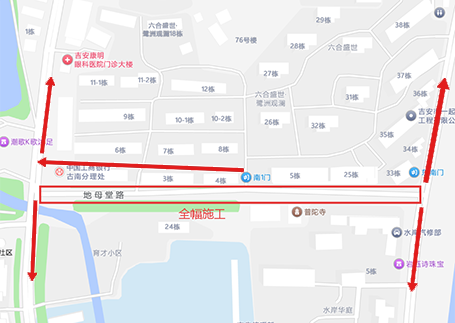 (十二)庐园街绕行路线:井冈山大道→北门桥东路→螺湖路→大桥西路
