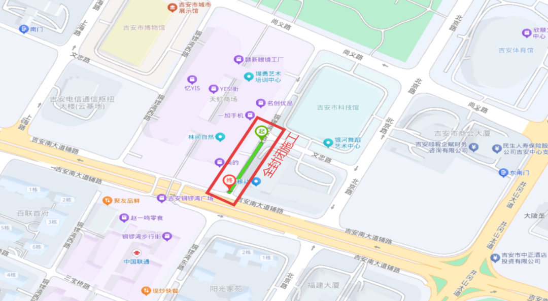 康宁路→君华大道;天华山东路→吉安南大道