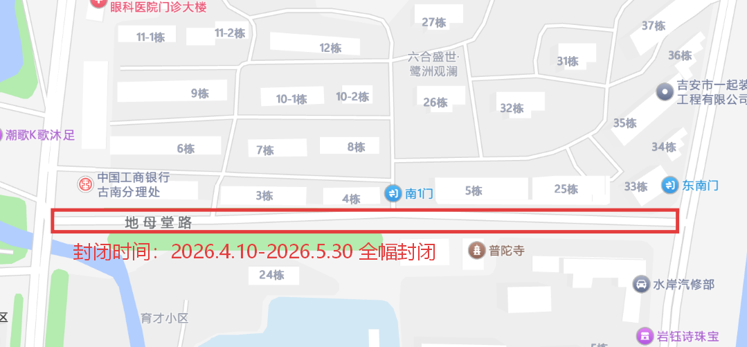 (五)地母堂路(跃进路——沿江路)实施全幅封闭施工