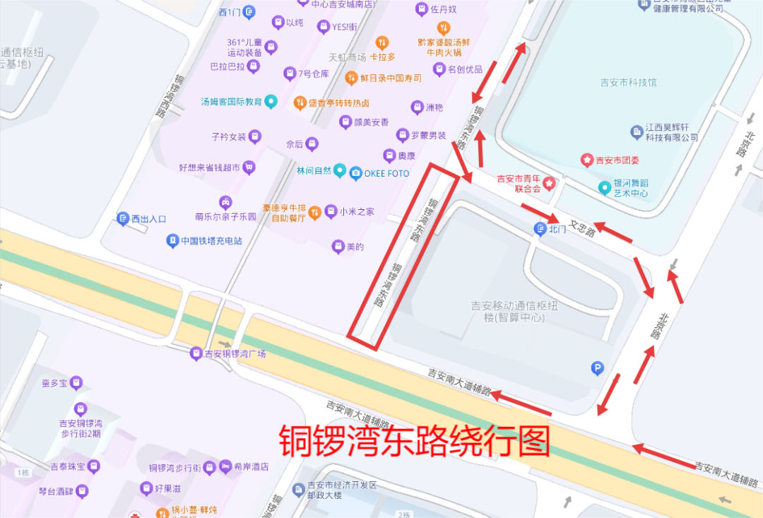 (一)铜锣湾东路:文忠路→北京路→吉安南大道