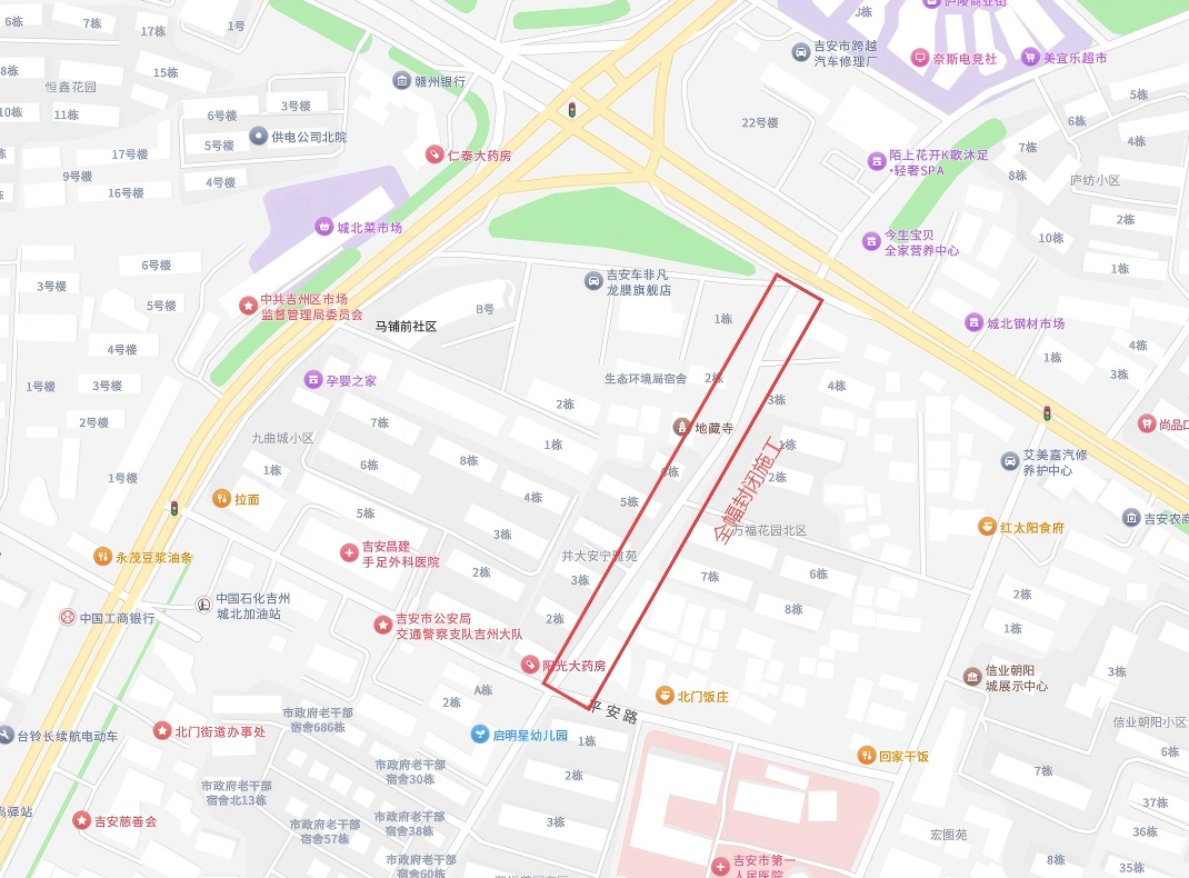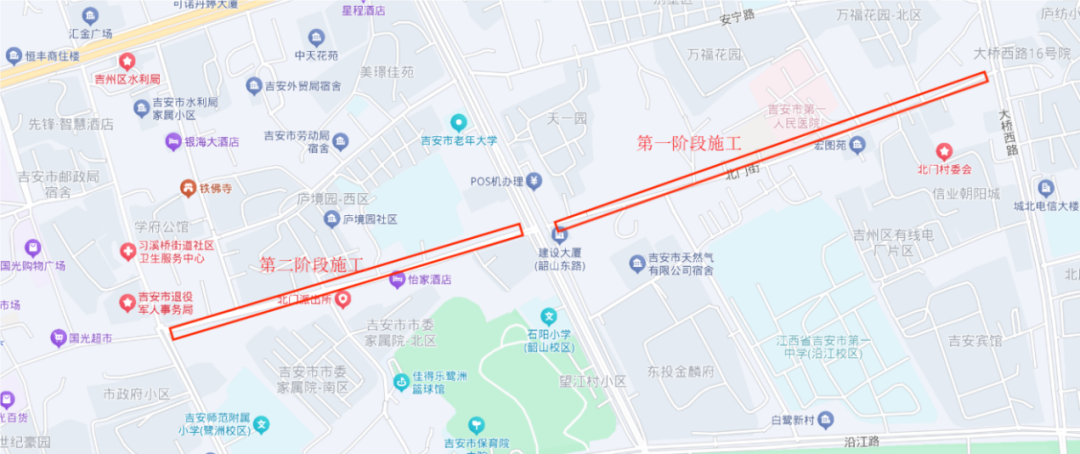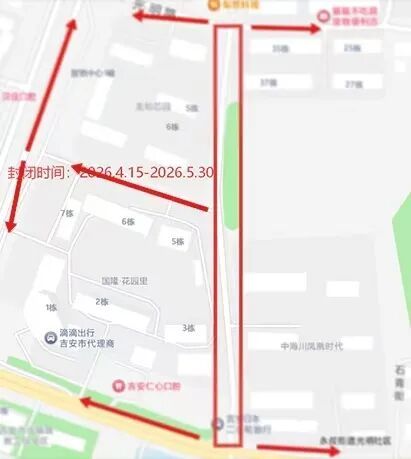 为保障吉安市中心城区雨污管网及配套基础设施建设二期项目(吉安市城区周边河西片区路口村标段)、吉州区老城区及螺湖流域污水管网改造项目、城北工业园及高铁片区污水管网改造项目、城南片区及城北片区污水管网改造项目、城北片区厂网河湖一体化综合治理项目、赣江西岸排水防涝项目顺利实施,根据施工安排,需对部分道路实施封闭施工,现将有关事项通告如下: