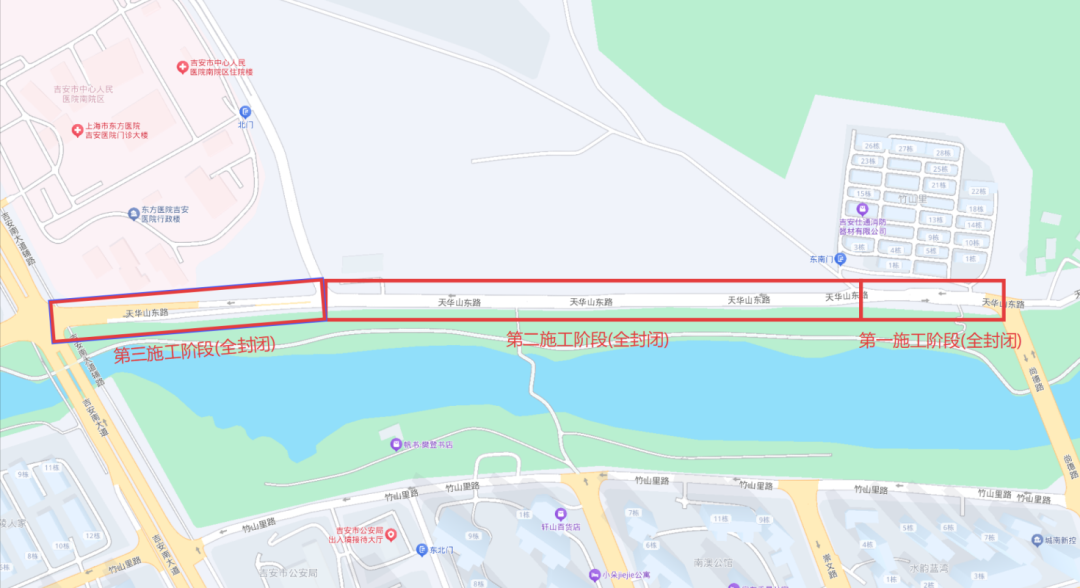 (二)天华山东路(吉安南大道——尚德路)路段双向两车道逐段全封闭施工