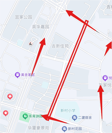 (十五)上巷路绕行路线:真君山路→高明宫路→井冈山北大道→北门桥西路