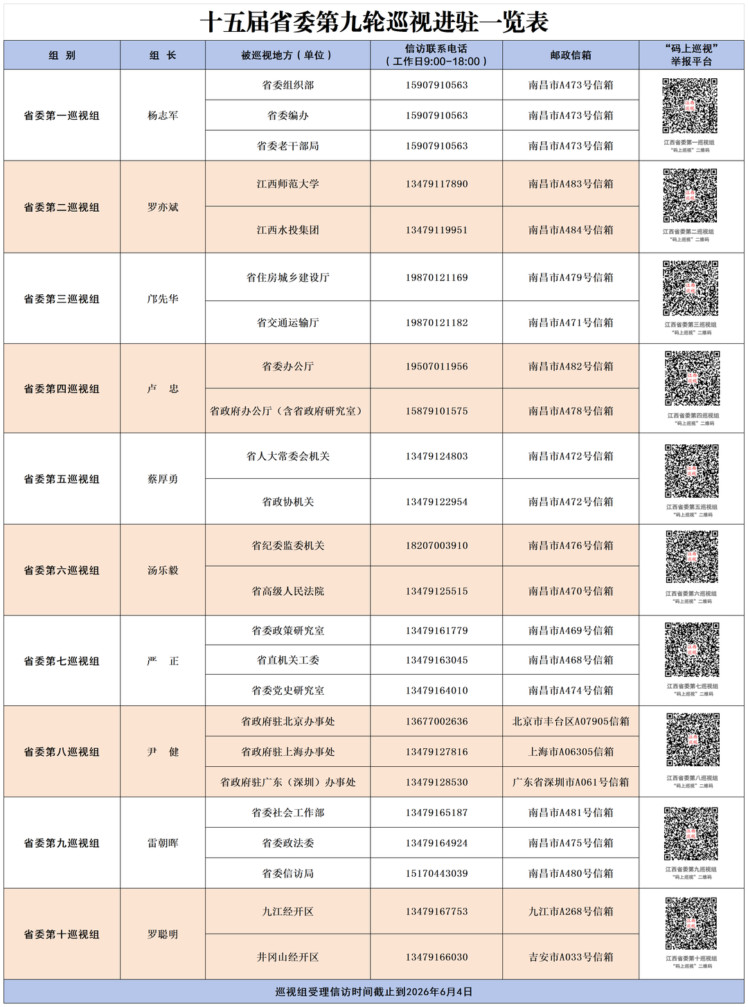 本轮巡视受理信访时间截止到2026年6月4日。